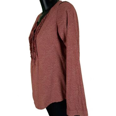 Ženska bluza u boji puder roze. - Kroj: ravna silueta, dužina do kukova. - Izrez: V-izrez sa dekorativnim izrezom/otvorom ispod vrata; visoka kragna koja se zakopčava sa dve kukice pozadi. - Rukav...700 RSD