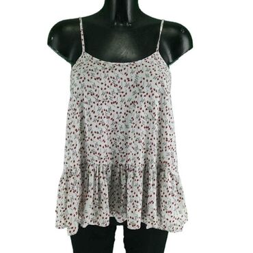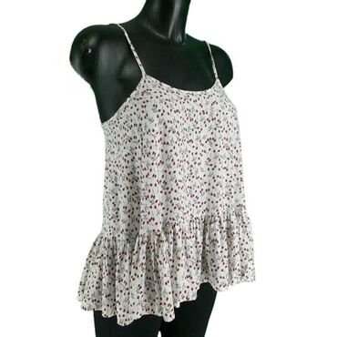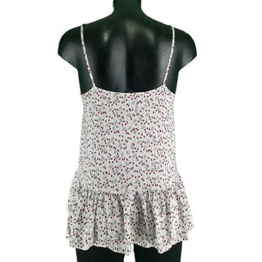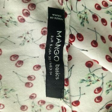 Bluza mango basics, vel.. S, viskoza marka: mango veličina: s materijal: viskoza 100% dužina: 70 cm ramena: 27 cm prečnik grudi: 43 cm šifra: bk7268 originalna ženska bluza mango u odličnom stanju (pogledajte slike).. Belo polje sa motivom trešanja, na tanke bretele, karner na dnu, viskozna, lagana, letnja.