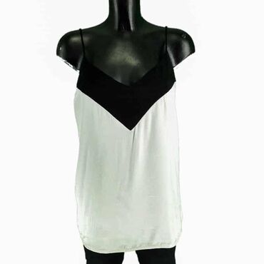 Bluza mango, vel.. M marka: mango veličina: m materijal: viskoza 100% dužina: 71 cm ramena: 27 cm prečnik grudi: 48 cm šifra: bk7254 originalna ženska bluza mango u odličnom stanju (pogledajte slike).. Bele boje, postavljena, na bretele, izrađena od viskoze, elegantna.