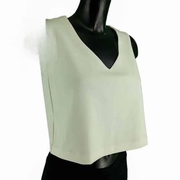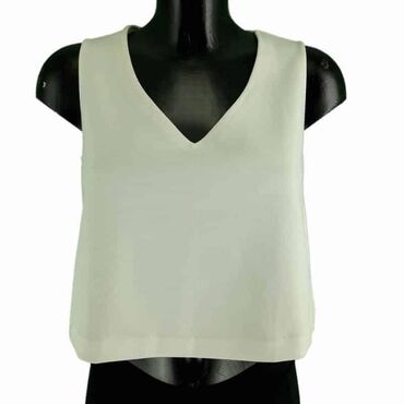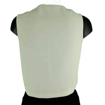 Bluza mango, vel.. S marka: mango veličina: s materijal: poliester dužina: 46 cm ramena: 35 cm prečnik grudi: 46 cm šifra: bk7277 originalna ženska bluza mango u odličnom stanju (pogledajte slike).. Bele boje, v izrez, bez rukava, elegantna.