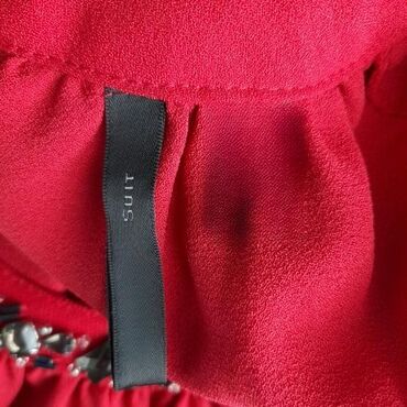 Bluza mango, vel.. Xs marka: mango veličina: xs materijal: poliester dužina: 65 cm ramena: 39 cm prečnik grudi: 52 cm šifra: bk7280 originalna ženska bluza mango u odličnom stanju (pogledajte slike).. Crvene boje, ovalan izrez, širi model, zakopčavanje na kukicu na leđima, elegantna.