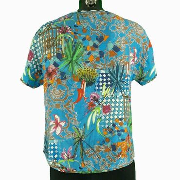Drugi brendBluza marc cain, vel.. M marka: marc cain veličina: m materijal: poliester dužina: 59 cm ramena: 43 cm prečnik grudi: 50 cm šifra: bk7272 originalna ženska bluza marc cain u odličnom stanju (pogledajte slike).. Plavo polje, šaren dezen, kimono rukavi.. Nedostaje etiketa sa veličinom - proveriti mere u opisu.