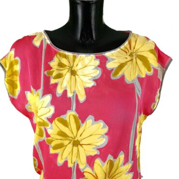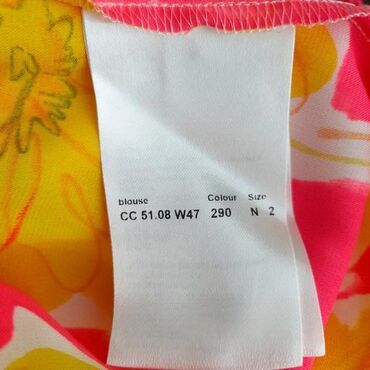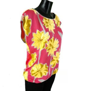 ŠarenoBluza marc cain, vel.. S/n 2 marka: marc cain veličina: s/n 2 materijal: poliester 100% dužina: 64 cm ramena: 42 cm prečnik grudi: 51 cm šifra: bk5893 originalna ženska bluza marc cain u odličnom stanju, kao nova (pogledajte slike).. Ciklama-žute boje, krupan cvetan dezen, ovalan izrez, guma na dnu, tanka, lagana.