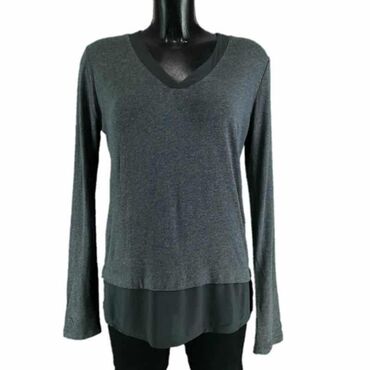 Bluza marc o'polo, vel.. S marka: marc o'polo veličina: s materijal: viskoza dužina: 70 cm ramena: 50 cm rukavi: 68 cm prečnik grudi: 58 cm šifra: bk7025 originalna ženska bluza marc o'polo u odličnom stanju (pogledajte slike).. Tamnosive boje, v izrez, sa dodatkom tila na dnu, lagana, prijatna za nošenje.