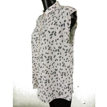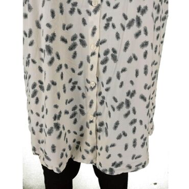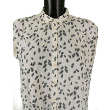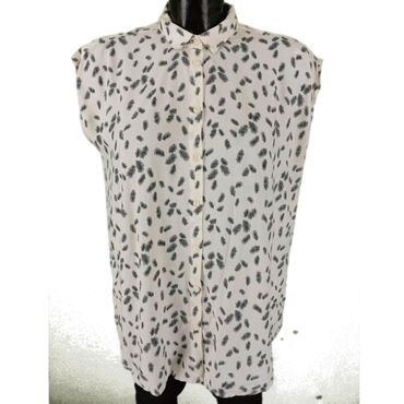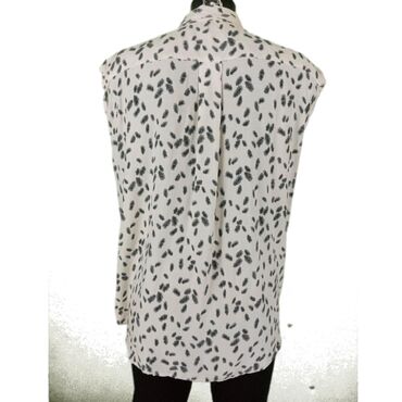 Ženske košulje – dva modela - Model 1: Crno‑siva košulja sa bogatim paisley/ornamentalnim printom. Klasičan kragnasti okovratnik, dug rukav, blago V-izrezano kopčanje sprijeda sa skrivenim dugmadi...