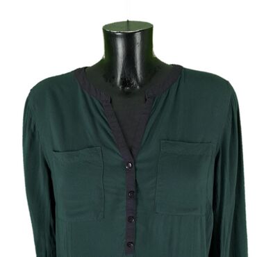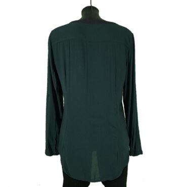 Alemar ženska košulja/bluza na dugmad - Veličina: M–XL (na etiketi XL) - Dužina: 65 cm - Poluobim grudi: 50 cm - Materijal: 64% poliester, 33% viskoza, 3% elastin - Boja/dekor: tamna osnova sa crv...