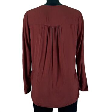 Bluza tom tailor, vel.. S, viskoza marka: tom tailor veličina: s materijal: viskoza 100% dužina: 70 cm ramena: 42 cm rukavi: 62 cm prečnik grudi: 51 cm šifra: bk6471 originalna ženska bluza tom tailor u odličnom stanju (pogledajte slike).. Cigla boje, polukružno sečena na dnu, trake unutar rukava kojima se isti mogu podviti, izrađena od ekološke viskoze, izuzetno prijatna za nošenje.