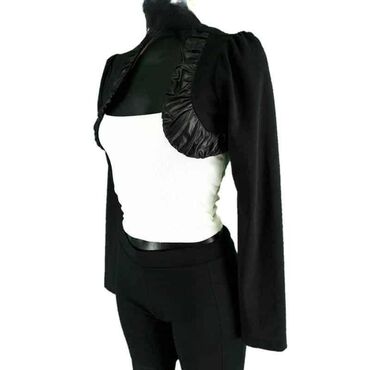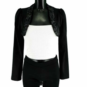 LetnjaBolero rinascimento, vel.. M marka: rinascimento veličina: s/36 materijal: poliester 64% viskoza 34% spandeks 2% dužina: 29 cm ramena: 40 cm rukavi: 60 cm prečnik grudi: 65 cm šifra: bk7245 originalni ženski bolero rinascimento u odličnom stanju (pogledajte slike).. Crne boje, izrađen od kvalitetne kombinacije materijala, elegantan.