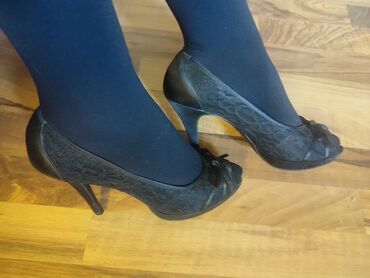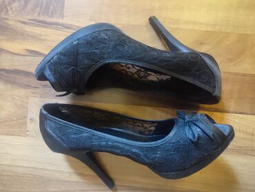 UpotrebljenоElegantne ženske cipele sa visokom štiklom,veoma stabilne, kombinacija satena i čipke, broj 39.