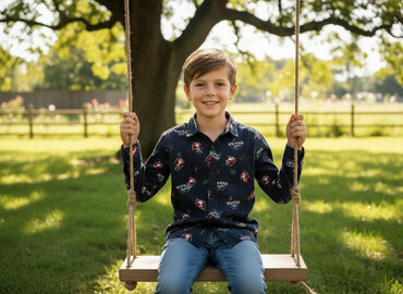 Vesela košulja koja unosi novogodišnju atmosferu, lako se kombinuje uz farmerke ili chino pantalone. Idealna za mališane od 8 do 9 godina.