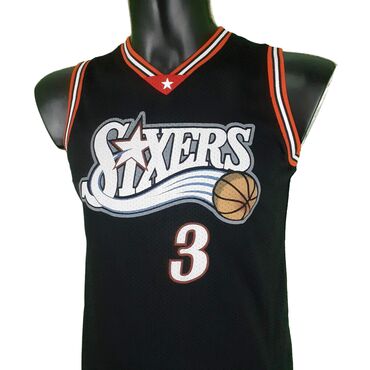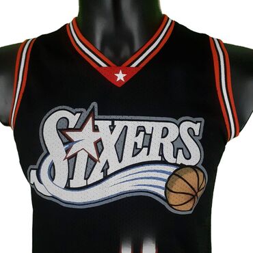 Dres allen iverson sixers, vel.. 170/16 god.. Marka: champion veličina: 16/170 materijal: poliester 100% dužina: 72 cm prečnik grudi: 50 šifra: bk3770 originalni muški dres allen iverson sixers u odličnom stanju.