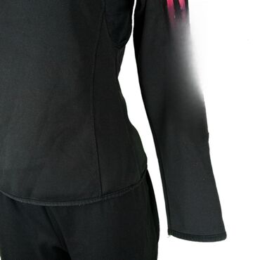 Nike ženska dukserica sa rajsferšlusom pozadi, veličina S. Model sa dugim rukavima i zaobljenim izrezom, u kombinaciji crne i svetlosive boje sa Nike Swoosh logotipom na grudima. Paneli u dve boje ...
