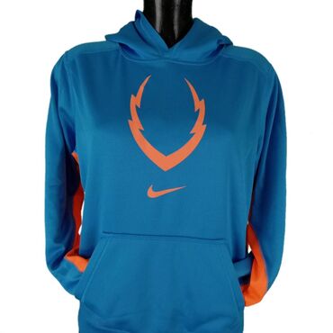 Drugi materijalDukser nike, vel.xl, therma-fit marka:nike veličina: xl materijal: poliester 100%, dužina: 63 cm ramena: 45 cm rukavi: 56cm prečnik grudi: 57 cm šifra: bk4834 originalni ženski dukser nike u odličnom stanju (pogledajte slike).. Narandžasto-plave boje, sa kapuljačom, ranfla na dnu i rukavima.. Therma-fit tehnologija pomaže u regulaciji i održavanju prirodne temperature tela pri