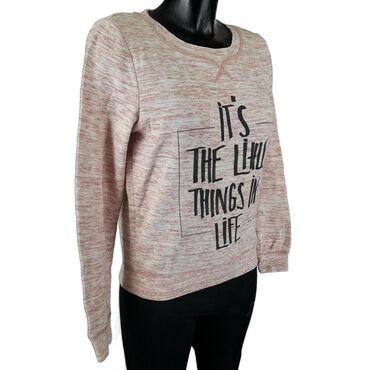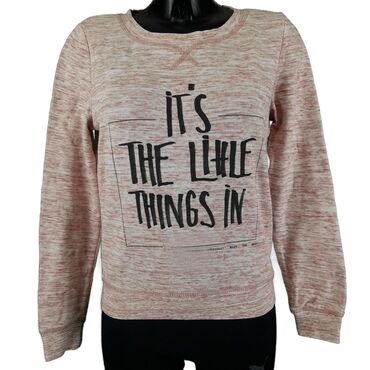 Dukser s.oliver, vel.. Xs/34 marka: s.oliver veličina: xs/34 materijal: pamuk 78% poliester 19% elastin 3% dužina: 57 cm ramena: 42 cm rukavi: 63 cm prečnik grudi: 53 cm šifra: bk6454 originalni ženski dukser s.oliver u odličnom stanju (pogledajte slike).. Roze boje.. Šprican dezen, ranfle na dnu i rukavima, tanji.