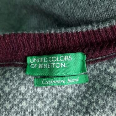 LDžemper benetton, vel.. L, kašmir marka: benetton veličina: l materijal: vuna 32% poliamid 32% viskoza 30% kašmir 3% druga vlakna 3% dužina: 82 cm ramena: 53 cm rukavi: 76 cm prečnik grudi: 67 cm šifra: bk6490 originalni muški džemper benetton u dobrom stanju (pogledajte slike).. Sive boje, ranfle na dnu i rukavima, ovalan izrez, izrađen od kvalitetne mešavine prirodnih i sintetičkih materijala, koja uključuje i vunu, kašmir i viskozu, mekan, topao.