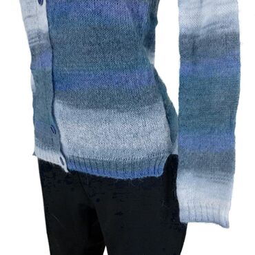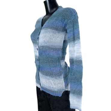 Elegantna ženska jaknica – River Island - Model: kratka jakna/kardigan bez kragne, otvorenog kroja - Materijal: tkanje sa metaliziranim (sjajnim) nitima - Boja/dezen: bež podloga sa tankim tamnim ...