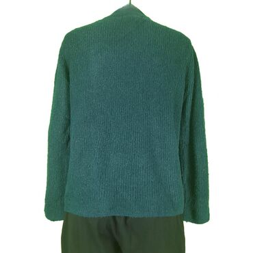 Pletena ženska bluza/džemper - Boja: maslinasto zelena - Kroj: strukiran, duži model; okrugli izrez; duži, blago zvonasti rukavi - Pletenje: reljefni uzorak sa isprepletenim “pletenicama” po celoj...