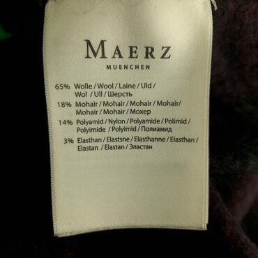 MDžemper maerz, vel.. M/38, vuna, moher marka: maerz veličina: m/38 materijal: vuna 65% moher 18% poliamid 14% elastin 3% dužina: 60 cm ramena: 38 cm rukavi: 61 cm prečnik grudi: 50 cm šifra: bk6699 originalni ženski džemper maerz u odličnom stanju (pogledajte slike).. Tamnoljubičaste boje, ovalan izrez, izrađen od kombinacije kvalitetne vune, mohera i sintetičkih materijala, mekan, topao, puniji, prijatan za nošenje.