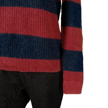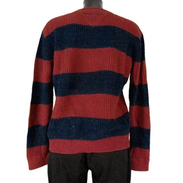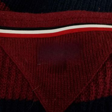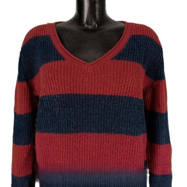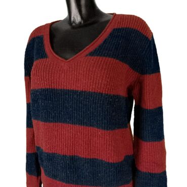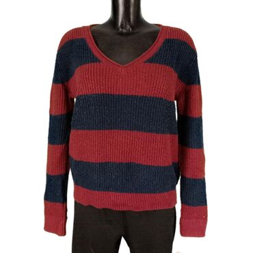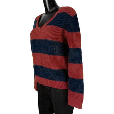 PrugastiDžemper tommy jeans, vel.. S marka:tommy jeans veličina: s materijal: poliester 68% vuna 27% elastin 1% dužina: 64 cm ramena: 51 cm rukavi: 66 cm prečnik grudi: 61 cm šifra: bk4820 originalni ženski džemper tommy jeans u odličnom stanju (pogledajte slike).. Lepa kombinacija bordo-teget boje, širi model, v izrez.. Ranfla na dnu i rukavima.. Puniji, deblji džemper.