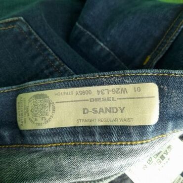 Farmerke diesel, vel.. S/w26 l34, d-sandy marka: diesel veličina: s/w26 l34 materijal: pamuk 98% elastin 2% dužina: 103 cm prečnik struka: 36 cm unutrašnja nogavica: 81 cm prečnik nogavice dole: 16 cm šifra: bk6728 originalne ženske farmerke diesel u odličnom stanju (pogledajte slike).. Tamnoplavi teksas, ravan kroj nogavica, regularan struk-regular waist, rastegljive zbog udela elastičnih materijala, srednje debljine.mali trag korišćenja sa desne strane šlica, skoro neprimetan.