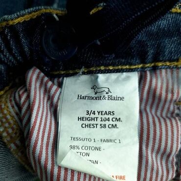 TamnoplavaFarmerke harmont & blaine, vel.. 104/3-4 g.. Marka: harmont & blaine veličina: 104/3-4 g. materijal: pamuk 98% elastin 2% dužina: 49 cm prečnik struka: 20-25 cm unutrašnja nogavica: 31 cm prečnik nogavice dole: 12 cm šifra: bk7106 originalne dečije farmerke harmont & blaine u odličnom stanju (pogledajte slike).. Tamnoplavi teksas, sa gumom u struku, srednje debljine, rastegljive zbog udela elastina u tkanju.