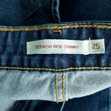 TamnoplavaFarmerke levis 721, vel.. Xs/w25 l32, high rise skinny marka: levis xs/w25 l32 materijal: pamuk 74% poliester 22% elastin 4% dužina: 106 cm prečnik struka: 31 cm unutrašnja nogavica: 81 cm prečnik nogavice dole: 12 cm šifra: bk7036 originalne ženske farmerke levis u odličnom stanju, kao nove (pogledajte slike).. Tamnoplavi teksas, visok struk, kroj nogavica koji se sužava na dole, srednje debljine.