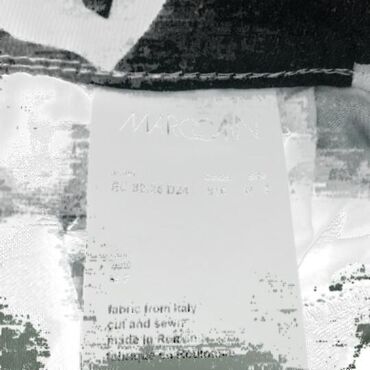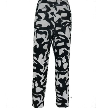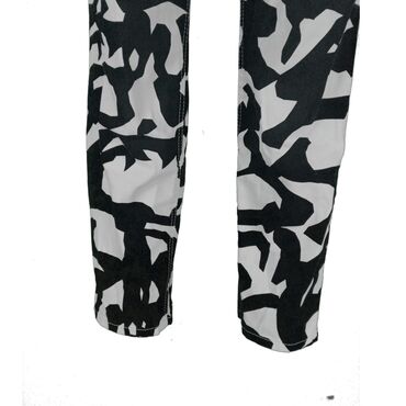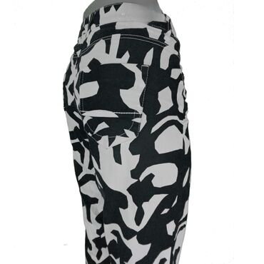Drugi brendFarmerke marc cain, vel.. Xl marka: marc cain veličina: xl materijal: pamuk 97% elastin 3% dužina: 99 cm prečnik struka: 45 cm unutrašnja nogavica: 73 cm prečnik nogavice dole: 18 cm šifra: bk5165 originalne ženske farmerke marc cain u odličnom stanju (pogledajte slike).. Crno-bele boje, šarenog dezena, kroj nogavica koji se sužava nadole.. Dva prednja, dva zadnja džepa.. Rastegljive zbog prisustva elastina u tkanju.. Preporuka!