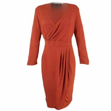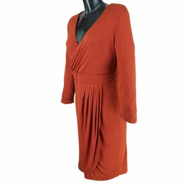 CrvenaHaljina esprit, vel.. L, viskoza marka: esprit, veličina: l materijal: viskoza 100% dužina: 107 cm ramena: 44 cm rukavi: 55 cm prečnik struka: 44 cm prečnik grudi: 55 cm šifra: bk6665 originalna haljina esprit u odličnom stanju, kao nova (pogledajte slike).. Cigla boje, dužine ispod kolena, preklop na grudima, sa lepim padom tkanine, izrađena od viskoze, prijatna za nošenje.