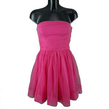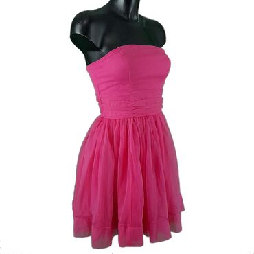 RozeHaljina h&m, vel.. S/12 marka: h&m veličina: s/12 materijal: poliamid dužina: 68 cm prečnik struka: 36 cm prečnik grudi: 40 cm šifra: bk6125 originalna haljina h&m u odličnom stanju (pogledajte slike).. Ciklama boje, dosta tila, sa postavom od viskoze.