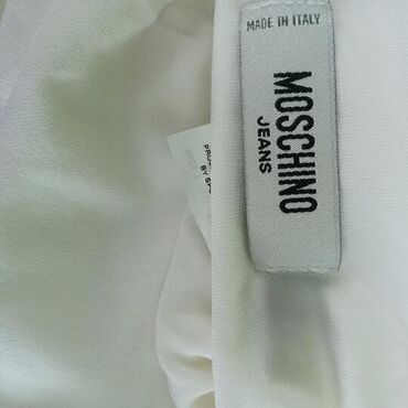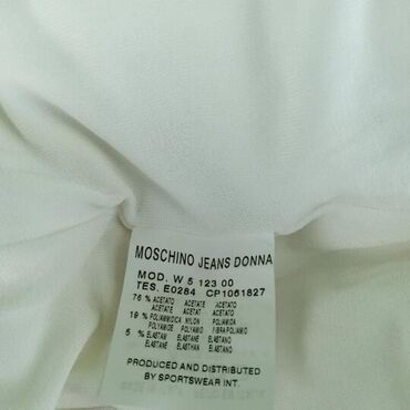 Haljina moschino, vel.. M/40 marka: moschino veličina: m/40 materijal: acetat 76% poliamid 19% elastin 5% dužina: 68 cm prečnik struka: 40 cm prečnik grudi: 45 cm šifra: bk5416 originalna ženska haljina moschino u odličnom stanju (pogledajte slike).. Bele boje, dužine iznad kolena, postavljena, sa dekorativnim učkurom koji omogućava različito stilizovanje, izrađena od kvalitetne kombinacije materijala.