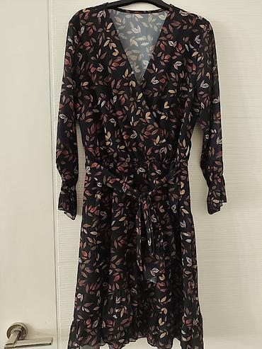 - Model: midi haljina s preklopom (V-izrez) i dužim rukavima