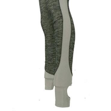 Ženske sportske helanke, trobojni dizajn. - Boje: crna gornja zona, siva sredina, beli donji deo sa crnom linijom sa strane. - Kroj: visok struk, elastičan pojas, uske nogavice. - Dužina: 7/8 do pu...
