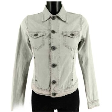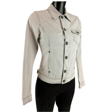 Drugi brendJakna sisley, vel.. M/40, teksas marka: sisley veličina: m/40 materijal: pamuk 98% elastin 2% dužina: 52 cm ramena: 39 cm rukavi: 61 cm prečnik grudi: 45 cm šifra: ja0416 originalna ženska jakna sisley u odličnom stanju (pogledajte slike).. Svetlosive boje, zakopčavanje na dugmad, rastegljiva zbog udela elastina u tkanju, klasična