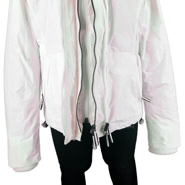 JednobojniJakna superdry, vel.. L marka: superdry veličina: l materijal: najlon 70% poliester 30% dužina: 65 cm ramena: 46 cm rukavi: 70 cm prečnik grudi: 57 cm šifra: ja0311 originalna ženska jakna superdry u odličnom stanju (pogledajte slike).. Bele boje, sa kapuljačom koja se ne skida, visoka kragna i ranfle u rukavima, trostruki rajsferšlusi, topla, zatezači na dnu i u struku.
