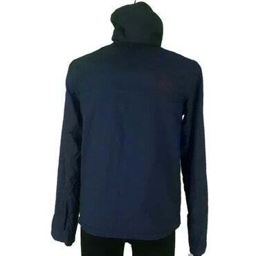 👑5400 dinara🌈 Crna muška jakna sa kapuljačom, sportsko–casual stil. Duži kroj sa punim rajsferšlusom napred. Elastične manžetne na rukavima i podesiva kapuljača sa učkurima. Na levom rukavu je pri...