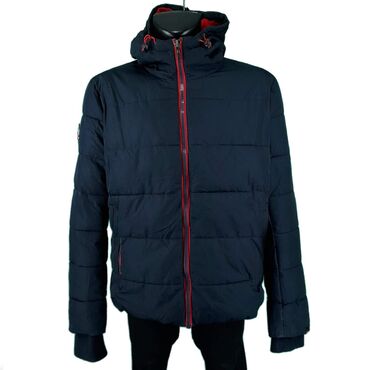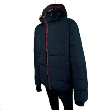 Zimska muška jakna, tamno siva/teget sa belim detaljima. - Topla, prošivena (puffer) konstrukcija sa punjenjem za dobru izolaciju - Visoka kragna za zaštitu od vetra - Prednji rajsferšlus u svetlij...
