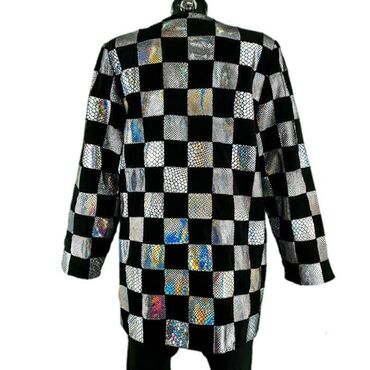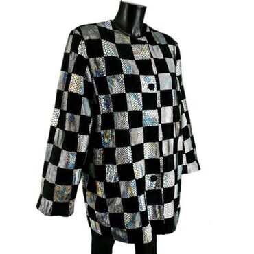 Jakna vera pelle, vel.. L marka: vera pelle veličina: l materijal: koža 100% dužina: 78 cm ramena: 43 cm rukavi: 60 cm prečnik grudi: 60 cm šifra: ja0473 originalna ženska jakna vera pelle u odličnom stanju (pogledajte slike).. Srebrno-crne boje, kariran dezen, postavljena, izrađena od čiste kože.. Nedostaje etiketa s veličinom - obratiti pažnju na mere u opisu artikla.