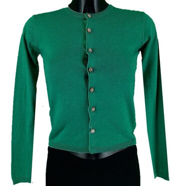 Kardigan dsquared2, vel.. 12 g.. Marka: dsquared2 veličina: 12 g. materijal: vuna 50% pamuk 50% dužina: 54 cm ramena: 38 cm rukavi: 59 cm prečnik grudi: 42 cm šifra: bk6637 originalni dečiji ženski kardigan dsquared2 u odličnom stanju, kao nov (pogledajte slike).. Zelene boje, tanji, zakopčavanje na dugmad, izrađen od kombinacije pamuka i vune, kvalitetan.
