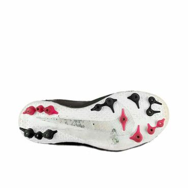 Fudbalske patike – crno‑bele - Model: klasičan dizajn sa talasastim šavovima na gornjištu - Boja: crna sa belim detaljima i tri bele pruge sa obe strane - Pertlanje: klasične crne pertle za sigurn...