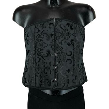 PoliesterKorset, vel.. 3xl marka: nn veličina: 3xl materijal: poliester 90% spandex 10% dužina: 30 cm prečnik grudi: podesiv šifra: bk6461 originalni ženski korset u odličnom stanju (pogledajte slike).. Crne boje, sa zakopčavanjem na dugmad na prednjoj strani, ušnjirana traka na leđima, elegantan.