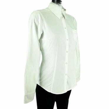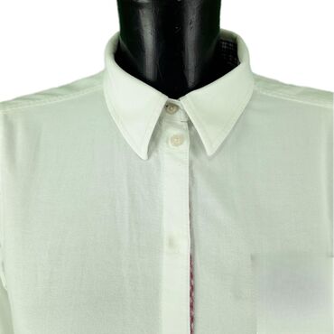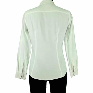 JednobojniKošulja esprit, vel.. Xs/34 marka: esprit veličina: xs/34 materijal: pamuk dužina: 63 cm ramena: 40 cm rukavi: 62 cm prečnik grudi: 50 cm šifra: bk6538 originalna ženska košulja esprit u odličnom stanju (pogledajte slike).. Bele boje, polukružno sečena na dnu, pamučna.. Strukiran model, ojačanja na laktovima.