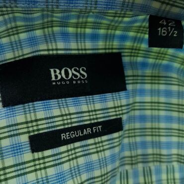 Košulja hugo boss, vel.. L, regular fit marka: hugo boss veličina: l materijal: pamuk 100% dužina: 77 cm ramena: 50 cm rukavi: 65 cm prečnik grudi: 59 cm šifra: bk4991 originalna muška košulja hugo boss u odličnom stanju, kao nova (pogledajte slike).. Kombinacija bele, svetloplave i zelene boje, sitniji karo dezen, regular fit model, polukružno sečena na dnu.. Klasična, pamučna, izuzetno prijatna za nošenje.