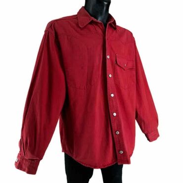 LKošulja levis, vel.. L, teksas marka: levis veličina: l materijal: pamuk 100% dužina: 77 cm ramena: 50 cm rukavi: 64 cm prečnik grudi: 68 cm šifra: bk6999 originalna muška košulja levis u odličnom stanju (pogledajte slike).. Crvene boje, puniji teksas, polukružno sečena na dnu, pamučna, kvalitetna.