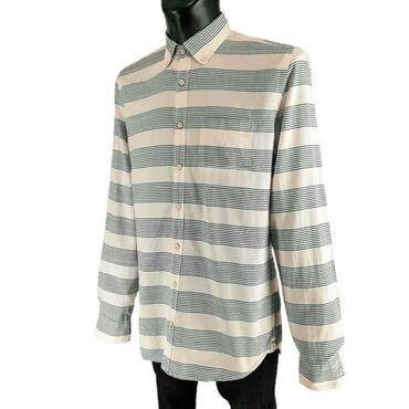 Na duge rukaveKošulja marc o' polo, vel.. L marka: marc o' polo veličina: l materijal: pamuk 100% dužina: 83 cm ramena: 47 cm rukavi: 71 cm prečnik grudi: 58 cm šifra: bk7300 originalna muška košulja marc o' polo u odličnom stanju (pogledajte slike).. Plavo-sive boje, prugast dezen, polukružno sečena na dnu, pamučna, klasična, kvalitetna.
