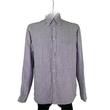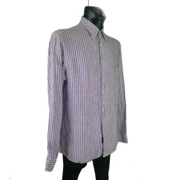 LKošulja mc neal, vel.. L, lanena marka: mc neal veličina: l materijal: lan 100% dužina: 83 cm ramena: 54 cm rukavi: 68 cm prečnik grudi: 63 cm šifra: bk5301 originalna muška košulja mc neal u odličnom stanju (pogledajte slike).. Ljubičaste boje, prugastog dezena, lanena, polukružno sečena na dnu, prijatna za nošenje.. Preporuka!