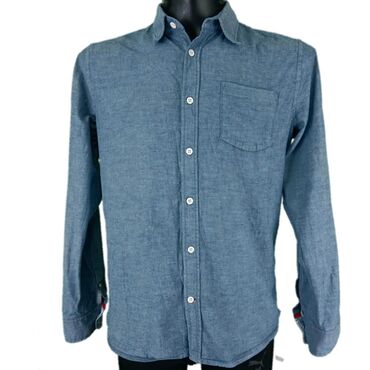 MKošulja pepe jeans, vel.. M marka: pepe jeans veličina: m materijal: pamuk dužina: 72 cm ramena: 44 cm rukavi: 65 cm prečnik grudi: 55 cm šifra: bk5374 originalna muška košulja pepe jeans u odličnom stanju (pogledajte slike).. Svetloplave boje, pamučna, tanak teksas, polukružno sečena na dnu.. Preporuka!