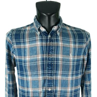 PamukKošulja ralph lauren, vel.. L, classic fit marka: ralph lauren veličina: l materijal: pamuk 100% dužina: 74 cm ramena: 45 cm rukavi: 68 cm prečnik grudi: 58 cm šifra: bk4987 originalna muška košulja ralph lauren u dobrom stanju (pogledajte slike).. Plave boje, karirana, flanelska, polukružno sečena na dnu.. Klasična, jednostavna, izuzetno prijatna za nošenje.. Mali znakovi nošenja, jedna na prednjoj i jedna na zadnjoj strani košulje u vidu izbledelih mrljica.