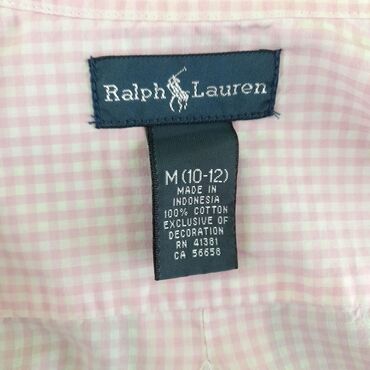 DugmadKošulja ralph lauren, vel.. M/10-12 g.. Marka: ralph lauren veličina:m/10-12 g. materijal: pamuk 100% dužina: 63 cm ramena: 41 cm rukavi: 52 cm prečnik grudi: 48 cm šifra: bk5000 originalna dečja muška košulja ralph lauren u odličnom stanju (pogledajte slike).. Belo-roze boje, sitan karo dezen, flanelska, polukružno sečena na dnu.. Klasična, jednostavna, izuzetno prijatna za nošenje.
