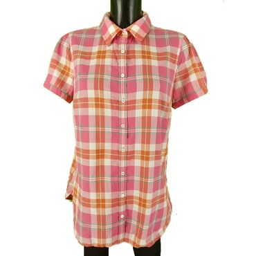 Ženska košulja na tufne Teget boja - Model: klasična košulja sa kragnom i dugmadima po sredini - Boja: tamnoplava podloga sa sitnim belim tufnama - Rukavi: dugi rukavi sa manžetnama na dugme - Džep...