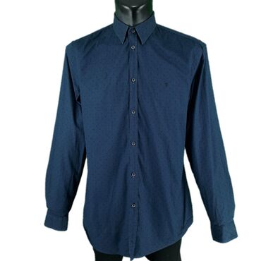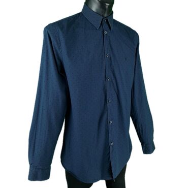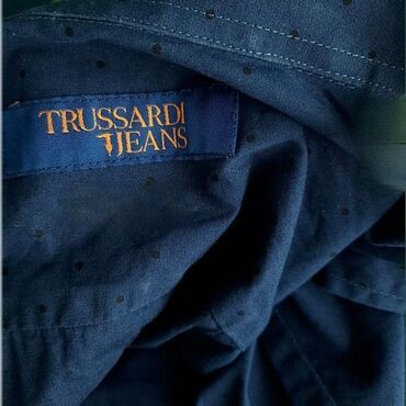 PamukKošulja trussardi jeans, vel.. L/42, slim fit marka: ralph lauren veličina: l/42 materijal: pamuk 97% elastin 3% dužina: 79 cm ramena: 49 cm rukavi: 69 cm prečnik grudi: 59 cm šifra: bk6528 originalna muška košulja trussardi jeans u odličnom stanju (pogledajte slike).. Teget boje, sitan tufnast dezen, polukružno sečena na dnu, pamučna, rastegljiva zbog prisustva elastina u tkanju.. Mali tragovi bledila na unutrašnjem delu kragne.